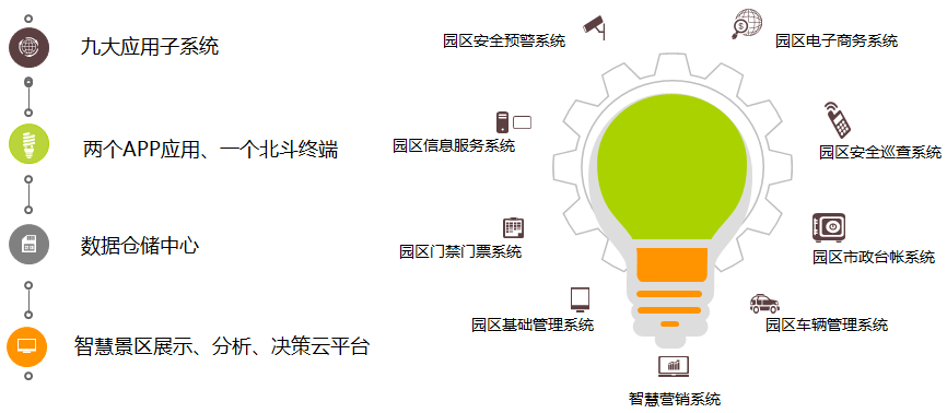 服務景區(qū):景區(qū)安防、電子門票、資訊發(fā)布、廣告營銷、游客流量統(tǒng)計/分析/挖掘/管理、旅游電子商務、投訴受理。